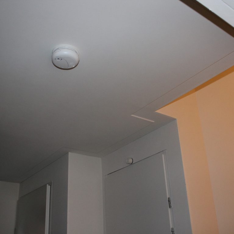 Nadat het plafond is gestuct, kan men ervoor kiezen om in de hoeken een sierlijst te plakken.