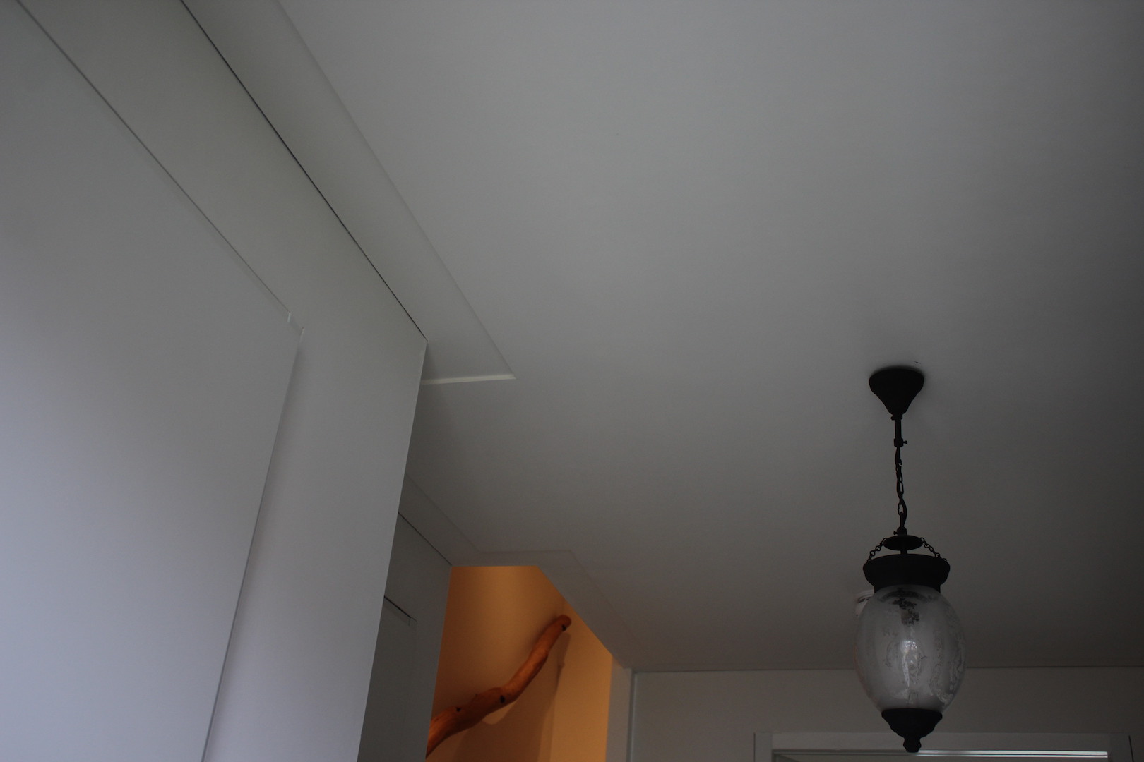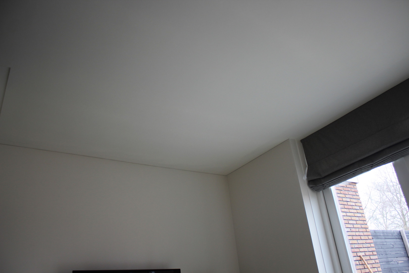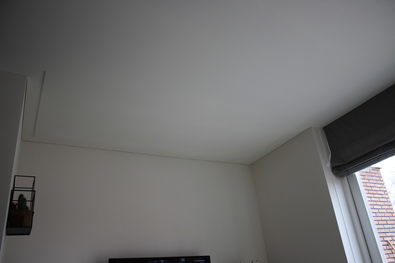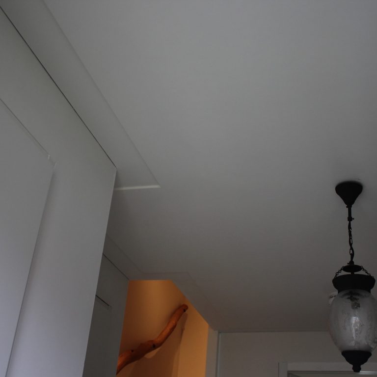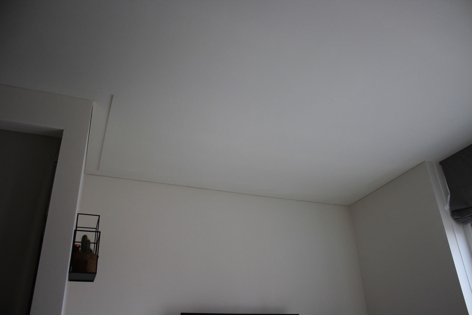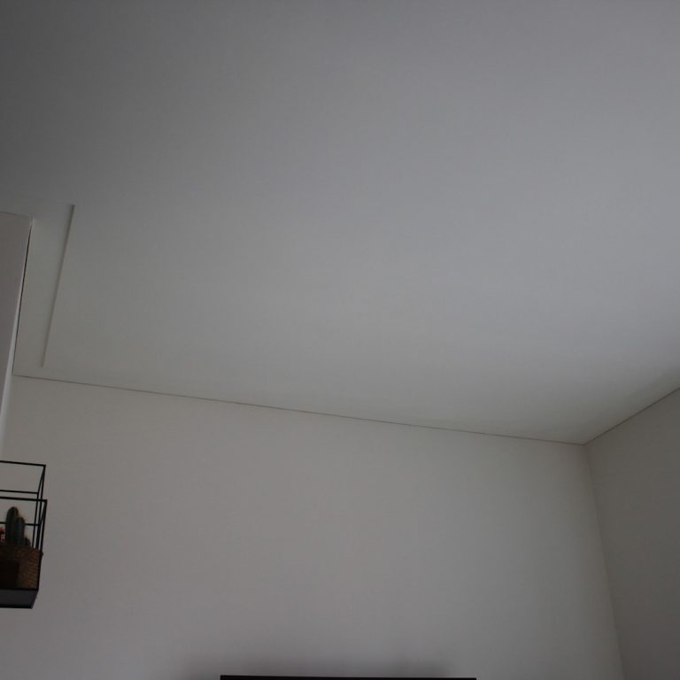 Nadat het plafond is afgewerkt hoeft het niet meer behandeld te worden met een latex, juist omdat een geschuurd plafond een mooi effect geeft met schaduw en licht. Zal je het plafond behandelen met latex, dan is dit effect nagenoeg weg.